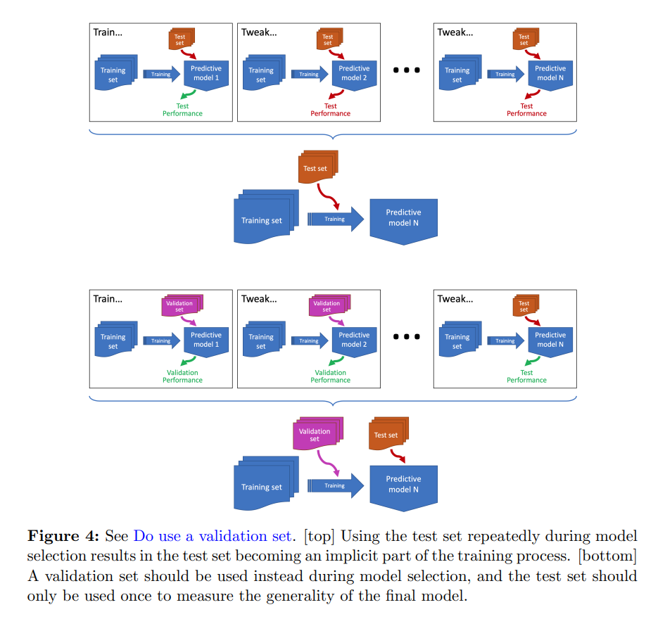 사실 테스트 셋을 모델 빌드 과정에서 쓰지 않아야 한다는 것은 당연하게 받아들여지지만, 의외로 쉽게 테스트 셋이 빌드 과정에 영향을 미칠 수도 있다.