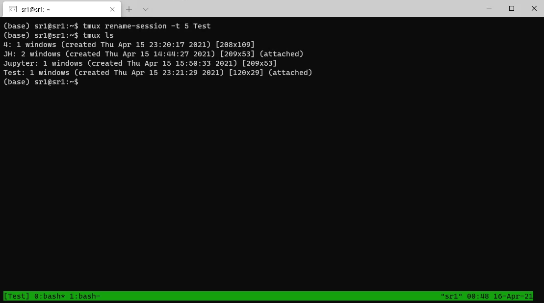 만약 그냥 session을 생성해 디폴트 넘버가 붙어 버렸고, 다시 만들기에는 이미 너무 중요한 프로세스를 시작해 버렸거나, 그저 session을 끄고 싶지 않다고 해 보자. 그럴 땐 어떻게 session의 이름을 바꿀 수 있을까? 크게 두 가지 방법이 있다.