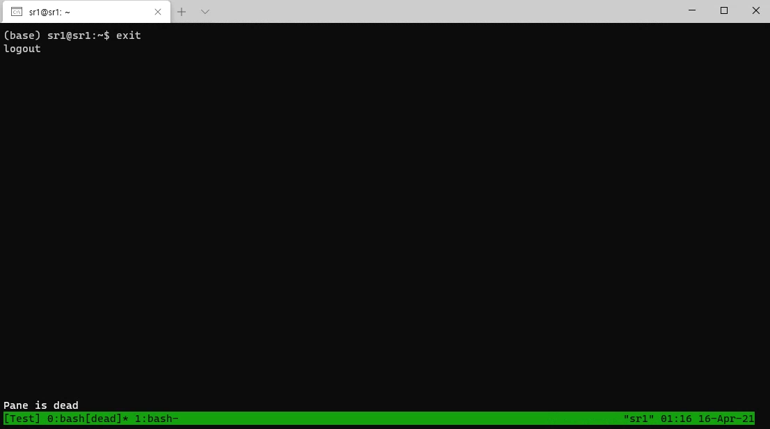 위 커맨드에 session 이름을 지정해서 종료시킬 수 있다. 혹은 단 한 개의 window와 pane밖에 없다면, ctrl + d 를 통해 종료시킬 수도 있다.